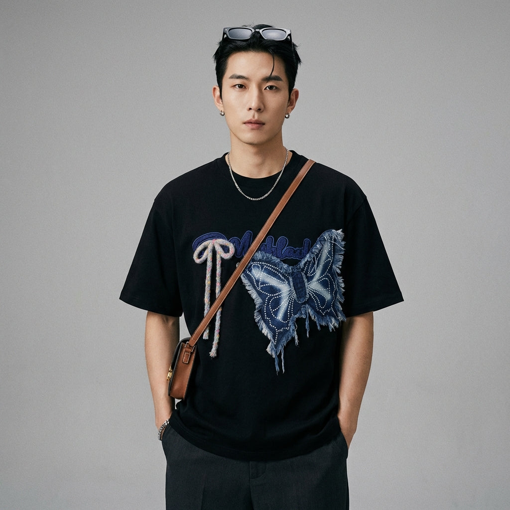 Embrace a casual and stylish look with our unisex short-sleeved T-shirt, adorned with a delicate embroidered butterfly motif. Its loose fit and versatile design make it a must-have for all occasions, inspired by the American retro trend! 🦋
