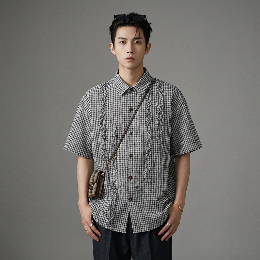 Adopt a casual and stylish look with our retro plaid shirt. Its loose fit and half-sleeves make it the perfect choice for a modern and comfortable look! ✨