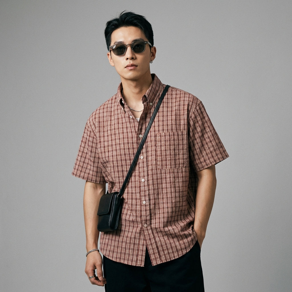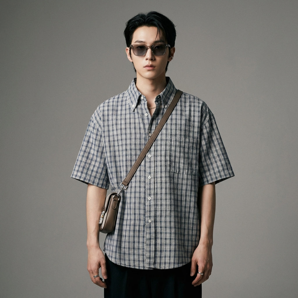 Embrace a casual and trendy look with our short-sleeved plaid shirt. Its classic design with a spread collar and a loose fit ensures comfort and style for all your occasions. Perfect for a touch of urban fashion in your everyday life! ✨