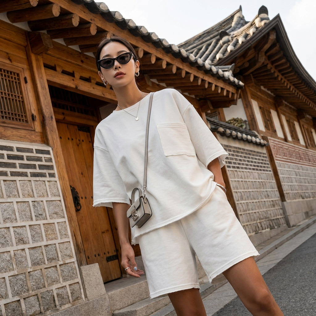 - Style: Casual, Streetwear, Summer. This set embodies casual fashion with a modern touch, perfect for an urban and relaxed look.