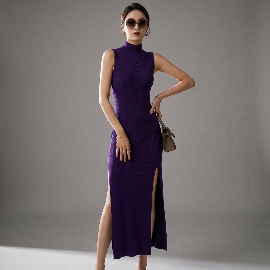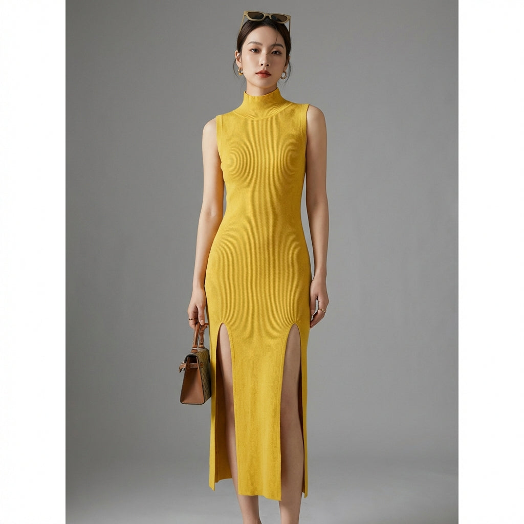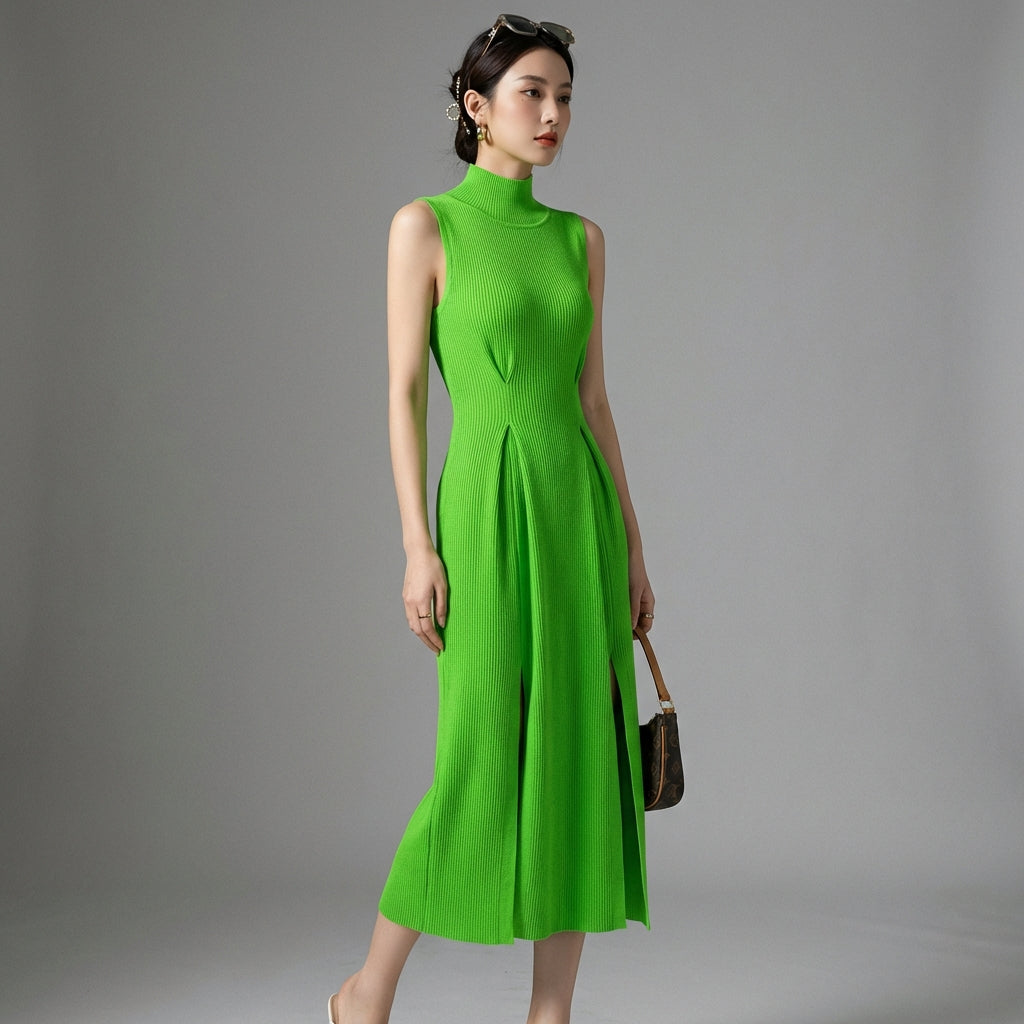 Discover our elegant pleated maxi dress, perfect for a refined and modern look. With its semi-high collar and sleeveless cut, it offers a slender and chic silhouette, ideal for all summer occasions! 🌸