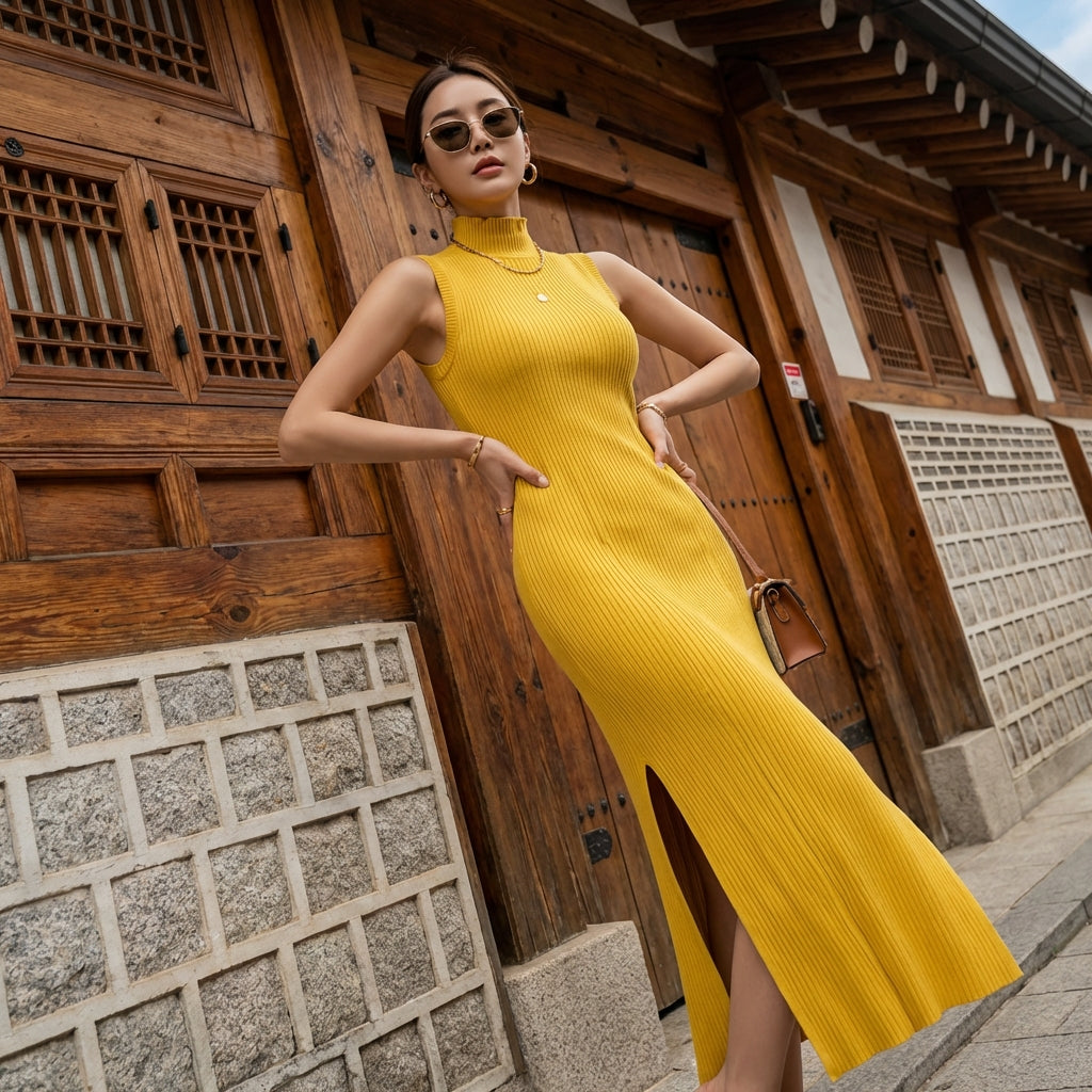- Style: Minimalist, Chic, Trendy. Inspired by K-fashion, this dress combines simplicity and sophistication, ideal for an urban style or a casual evening.