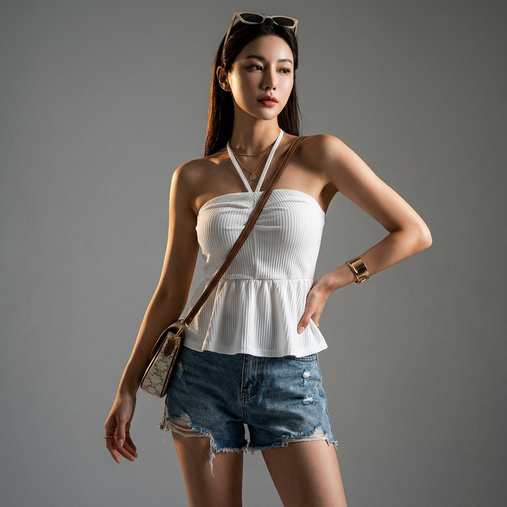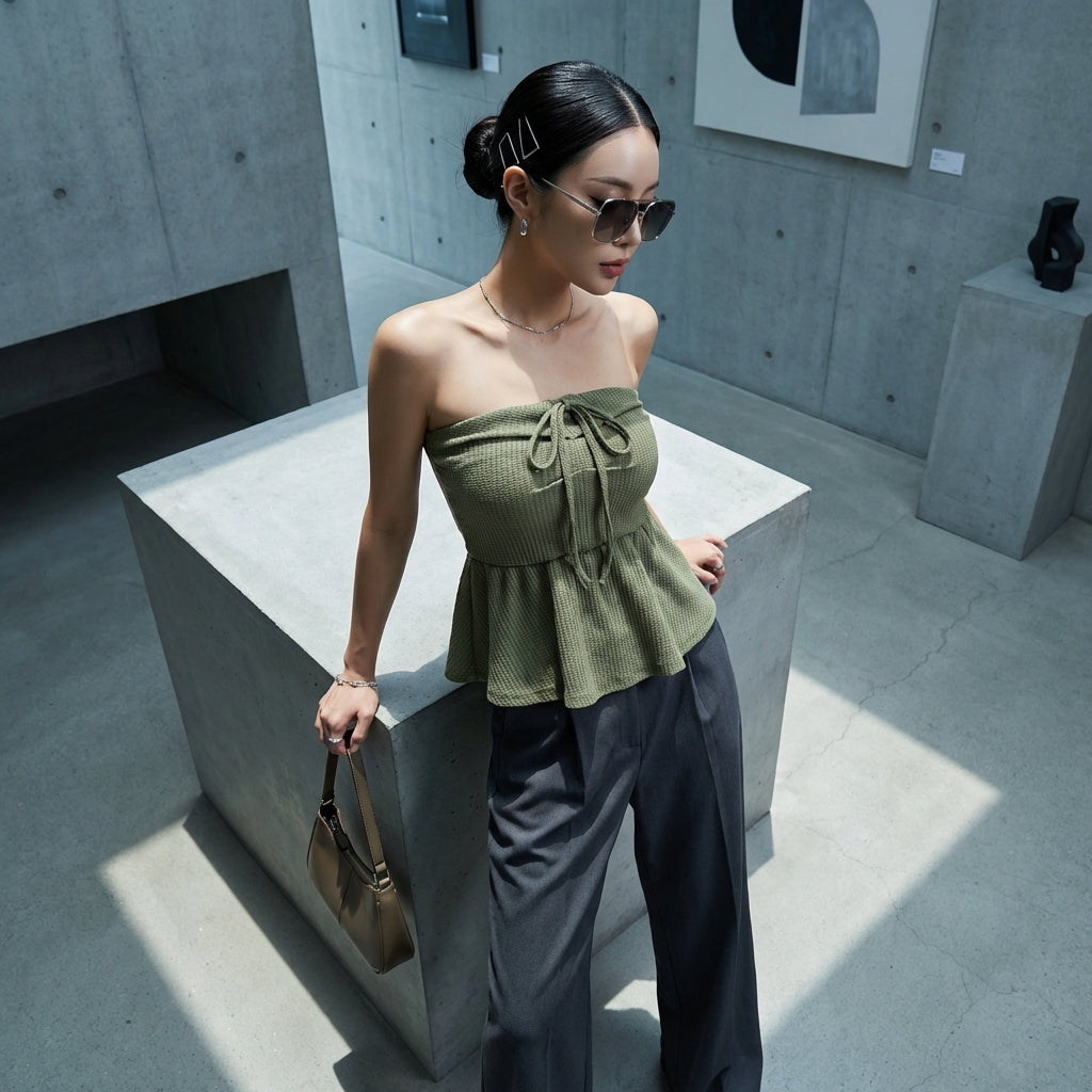 This sleeveless top is the ideal piece to express your personal style with a touch of Korean modernity. Easy to pair, it will quickly become a favorite in your collection.