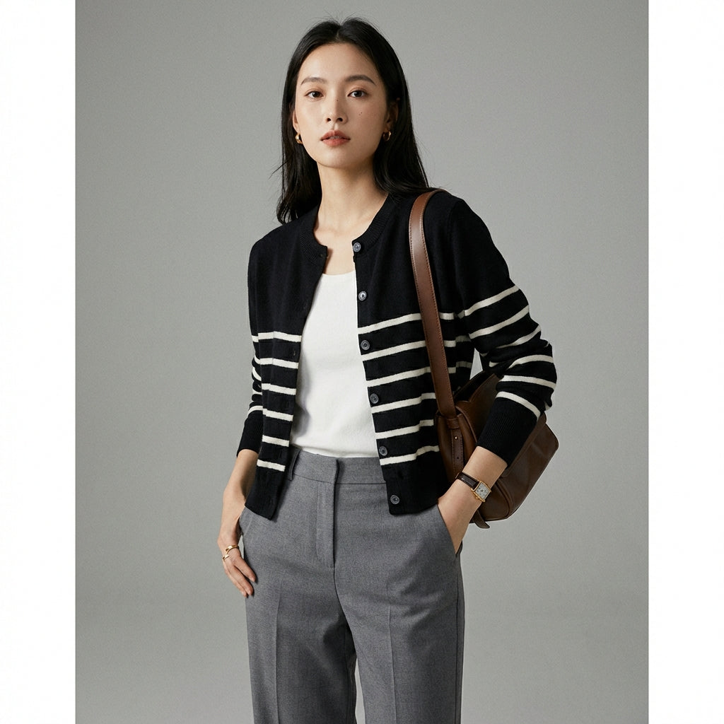- Style: K-fashion, Streetwear, Casual chic. This cardigan embodies modern elegance with a bold touch, typical of Korean fashion.