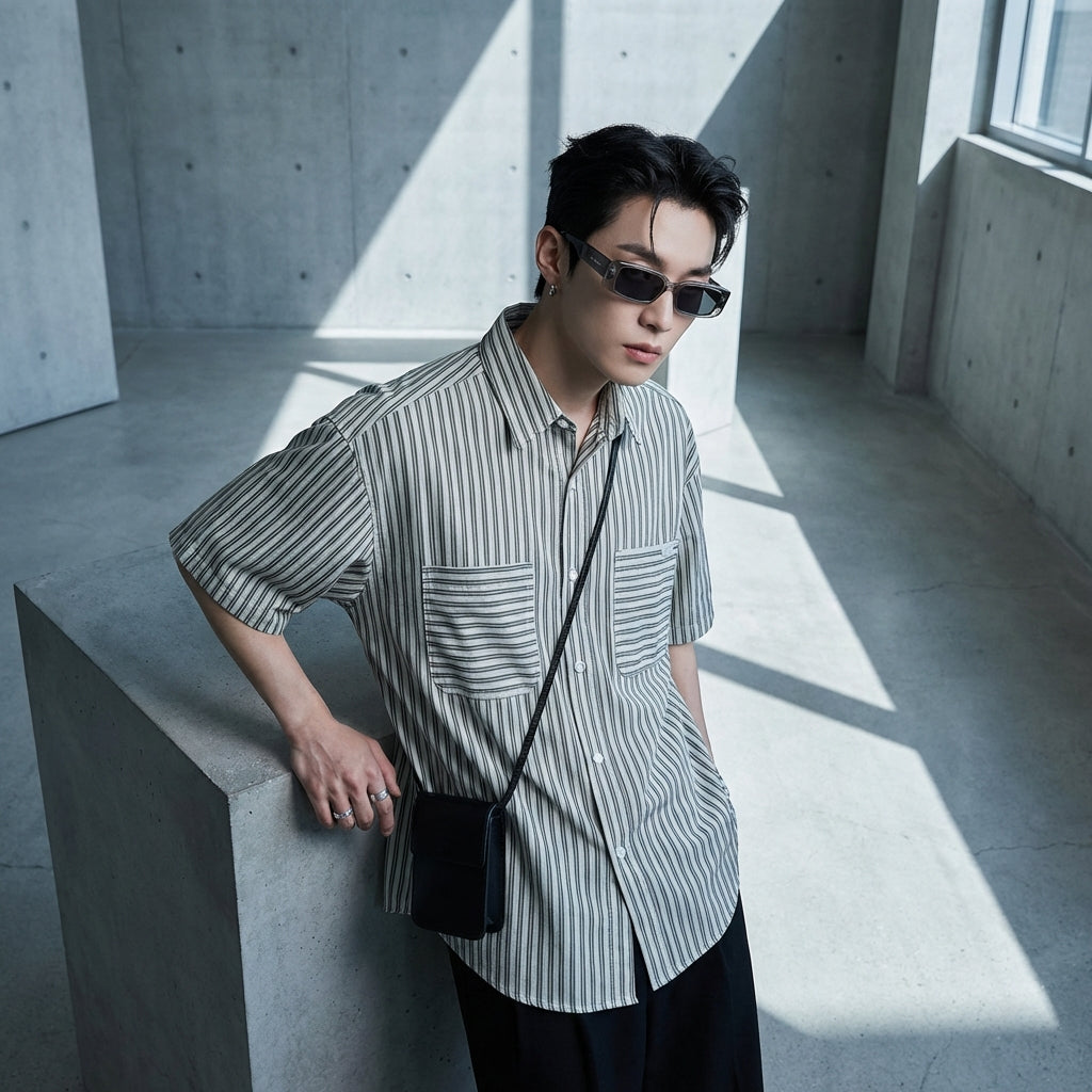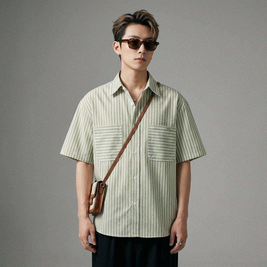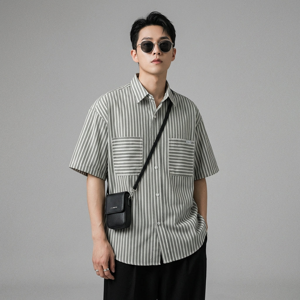 Embrace a casual and trendy look with our short-sleeved striped shirt. Its classic collar and loose fit make it an ideal choice for optimal comfort and a confident style, perfect for all occasions! 🤩