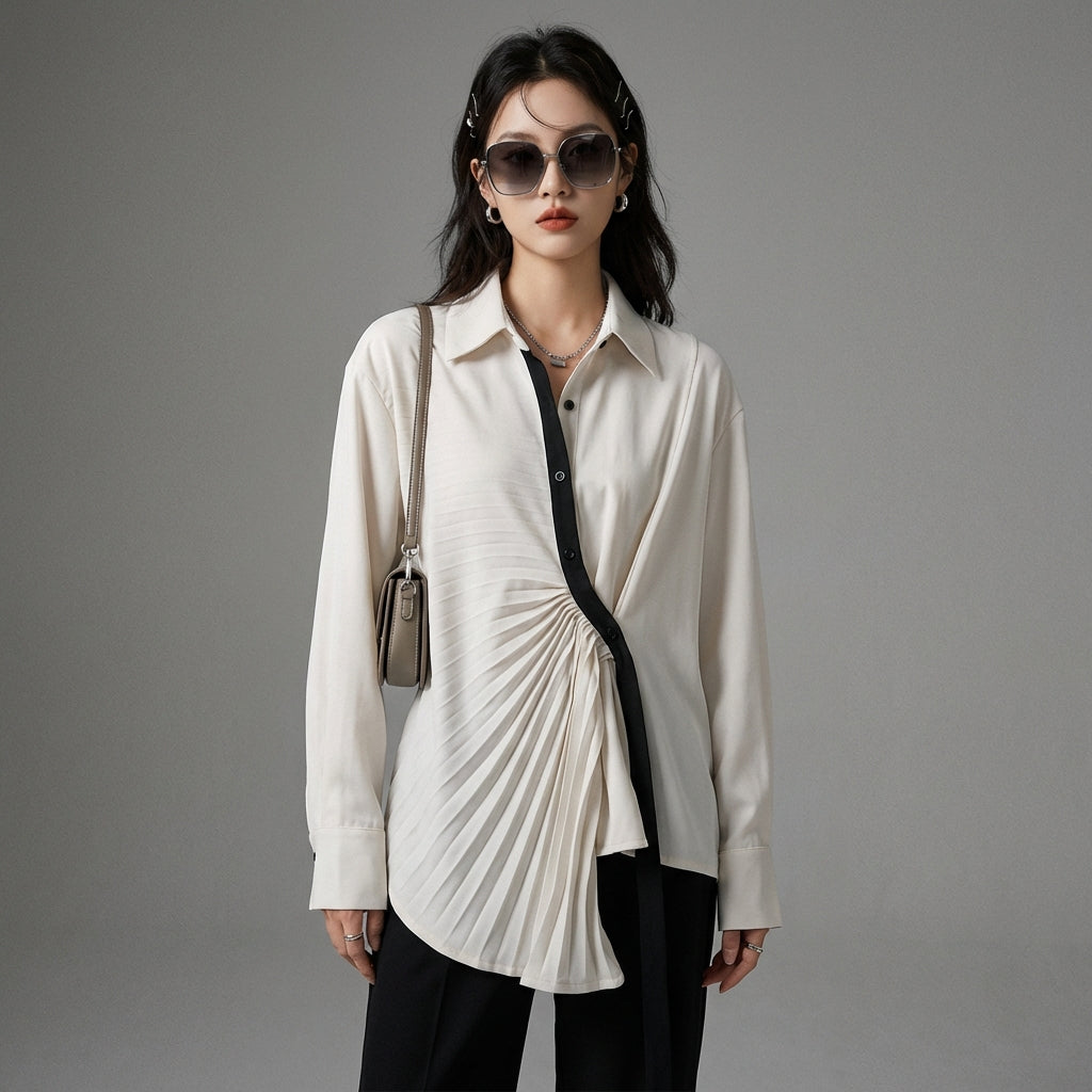 Embrace a casual yet sophisticated look with our long-sleeved pleated shirt. Its unique two-tone design and loose fit make it a must-have for a touch of relaxed style. Perfect for any occasion, it combines comfort and elegance! ✨