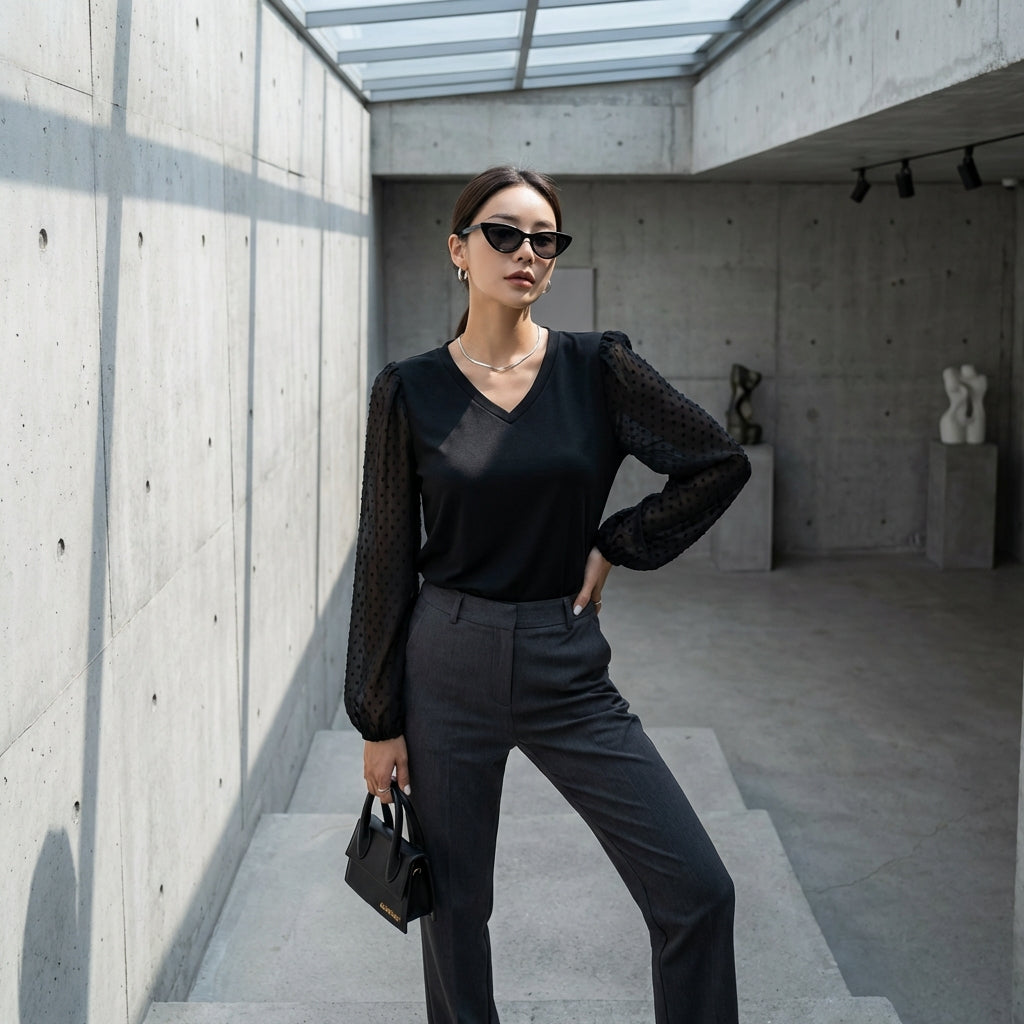 - Style: Minimalist, Trendy, K-fashion. This top embodies the discreet elegance and versatility of current fashion, with a touch of Korean inspiration.