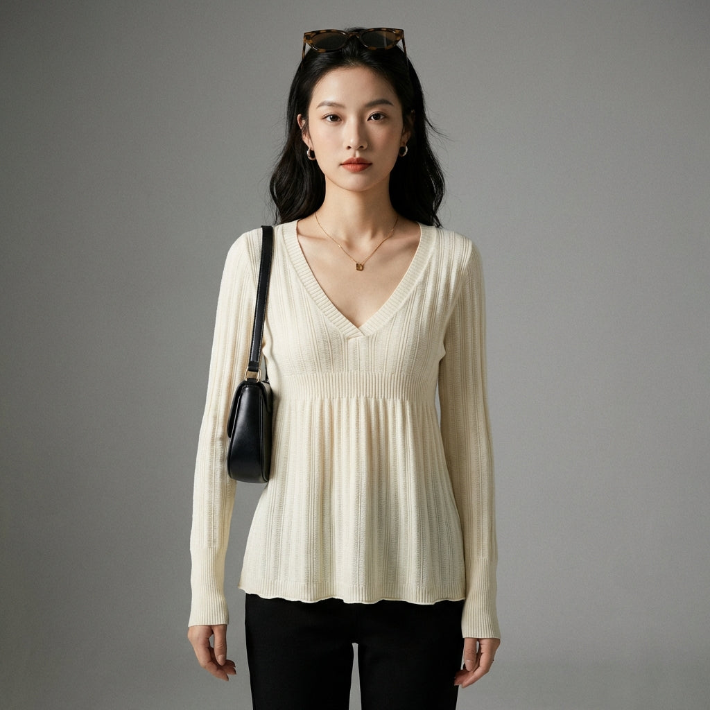 Adopt a casual yet elegant look with our soft V-neck long-sleeved top. Its comfortable fit and clean design make it a must-have for all occasions, from everyday wear to outings with friends. A classic revisited for a modern allure! ✨
