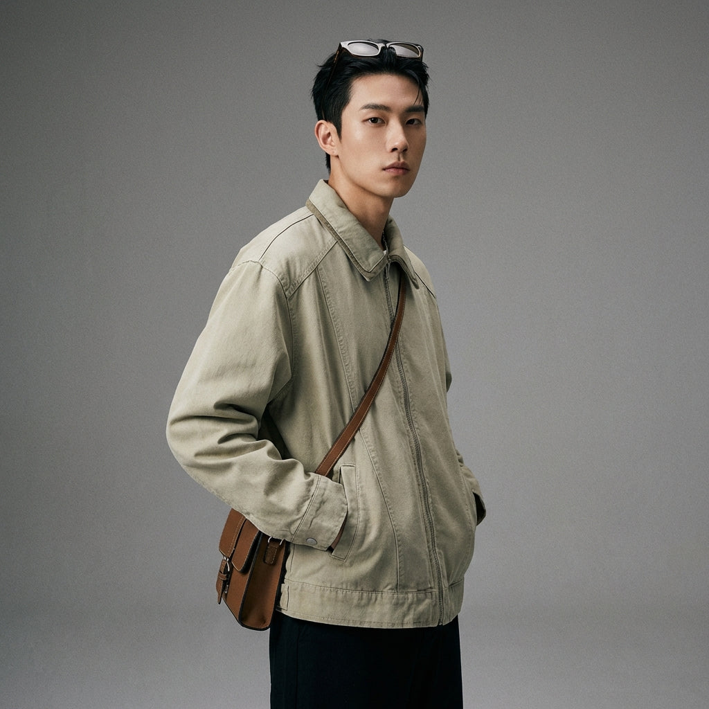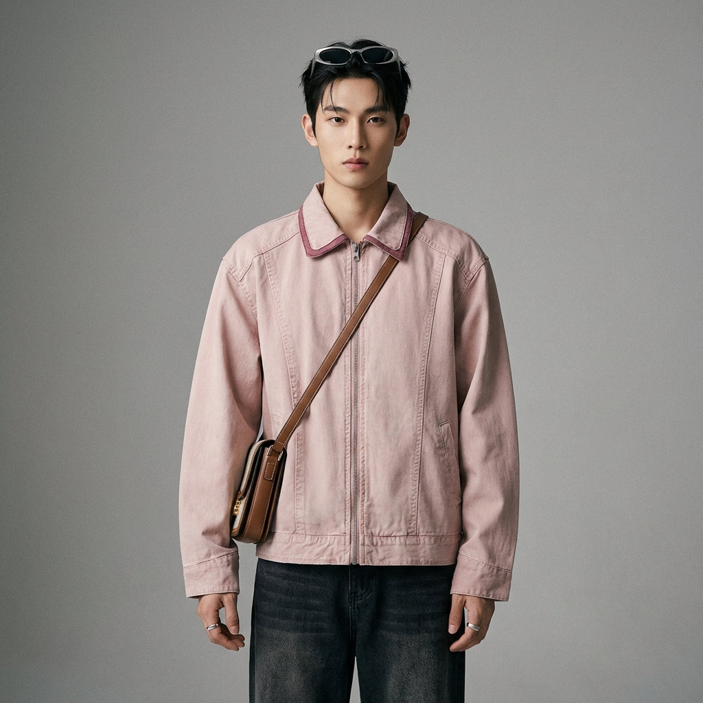 Washed Vintage Double Layer Collar Casual Jacket