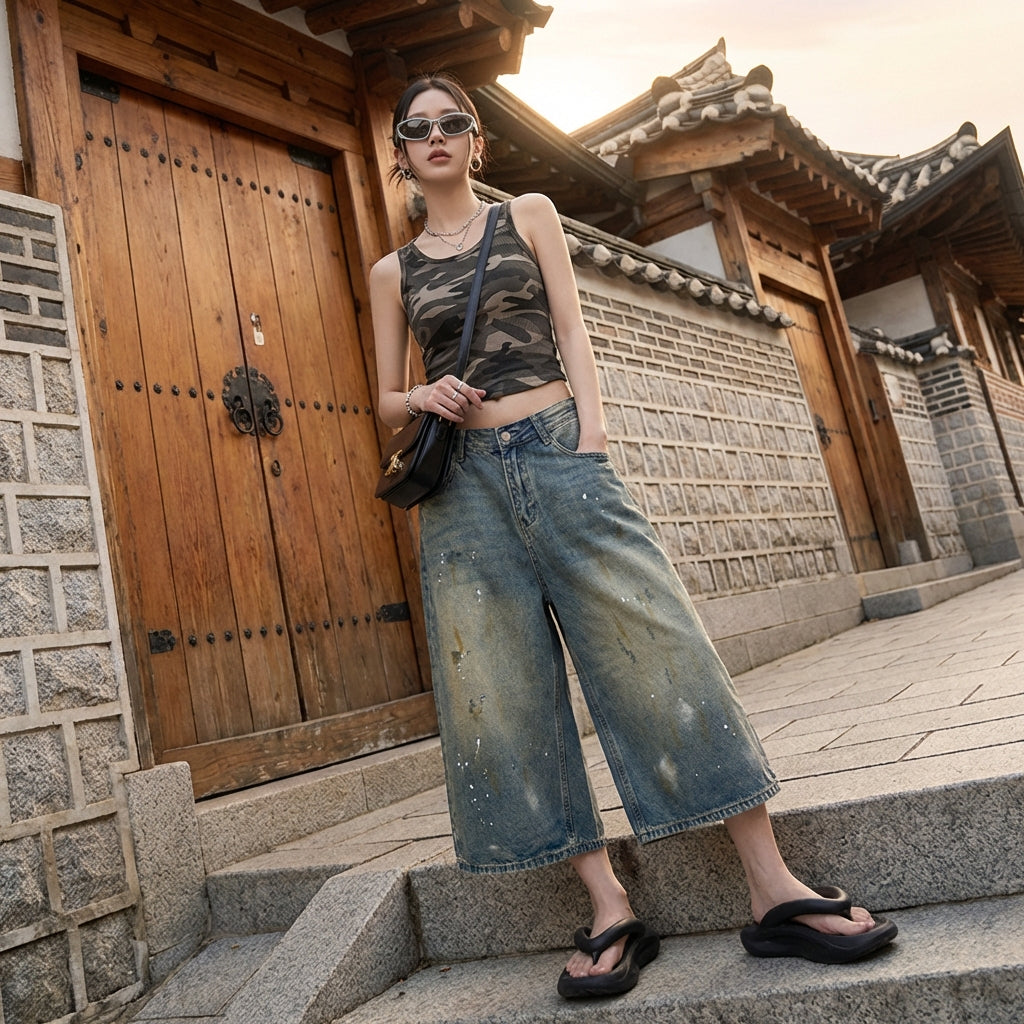 Assert your style with our wide-leg denim pants, featuring a unique wash and original "splatter" effect. Designed for comfort and trend, these jeans bring a touch of boldness to your streetwear outfits! ✨