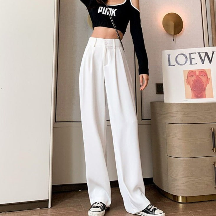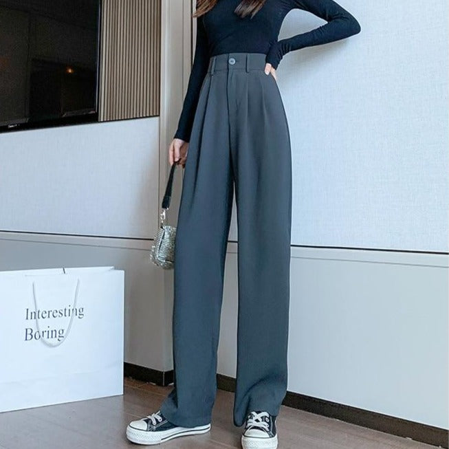 Here are the pants that please all women. They are high-waisted and very easy to wear with all your outfits. They are comfortable and light pants with a soft fabric. They are very practical for getting dressed quickly and making all your outfits chic, just like in South Korea.