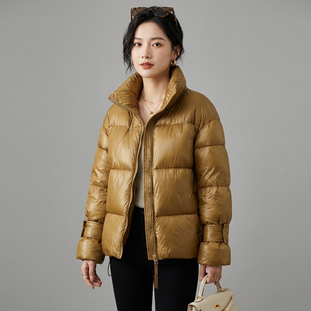 Veste col montant zippée avec boucle, style K-fashion urbain - Koreanxwear